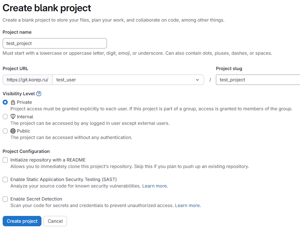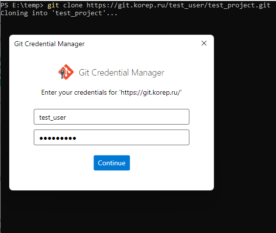 git clone https://git.korep.ru/test_user/test_project.git