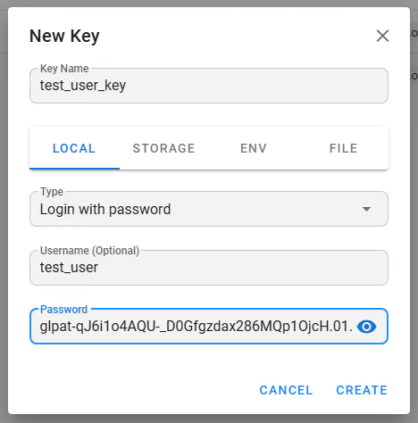 Первым делом нам необходимо добавить только что созданный токен. Переходим Key store — New key — Create